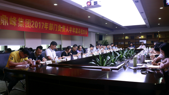 2017年7月23日上午8:45分,鼎峰集团2017年部门负责人半年度总结大会于鸿发大厦13楼5号会议室隆重举行。鼎峰集团总裁办全体领导、安徽鸿容公司副总经理李翔、总部各部门负责人、惠州鼎峰公司各部门负责人、鸿泰物业领导及各主要端口骨干共计50人出席大会。
