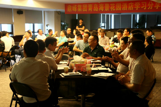 当天下午,在4号会议室举行海景花园酒店学习分享会。全体与会人员分组进行了积极热烈的讨论,并就各组讨论结果进行了深入讲解。简建锋总裁发言表示,我们不仅要学习海景花园酒店的服务精神,更要学习它的管理内核。服务是目标,是衍生出来的产品,我们要回归管理的本质,与时俱进,通过管理、通过品牌创造效益。产品是不断在变化的,但是管理、团队、品牌是永恒的。