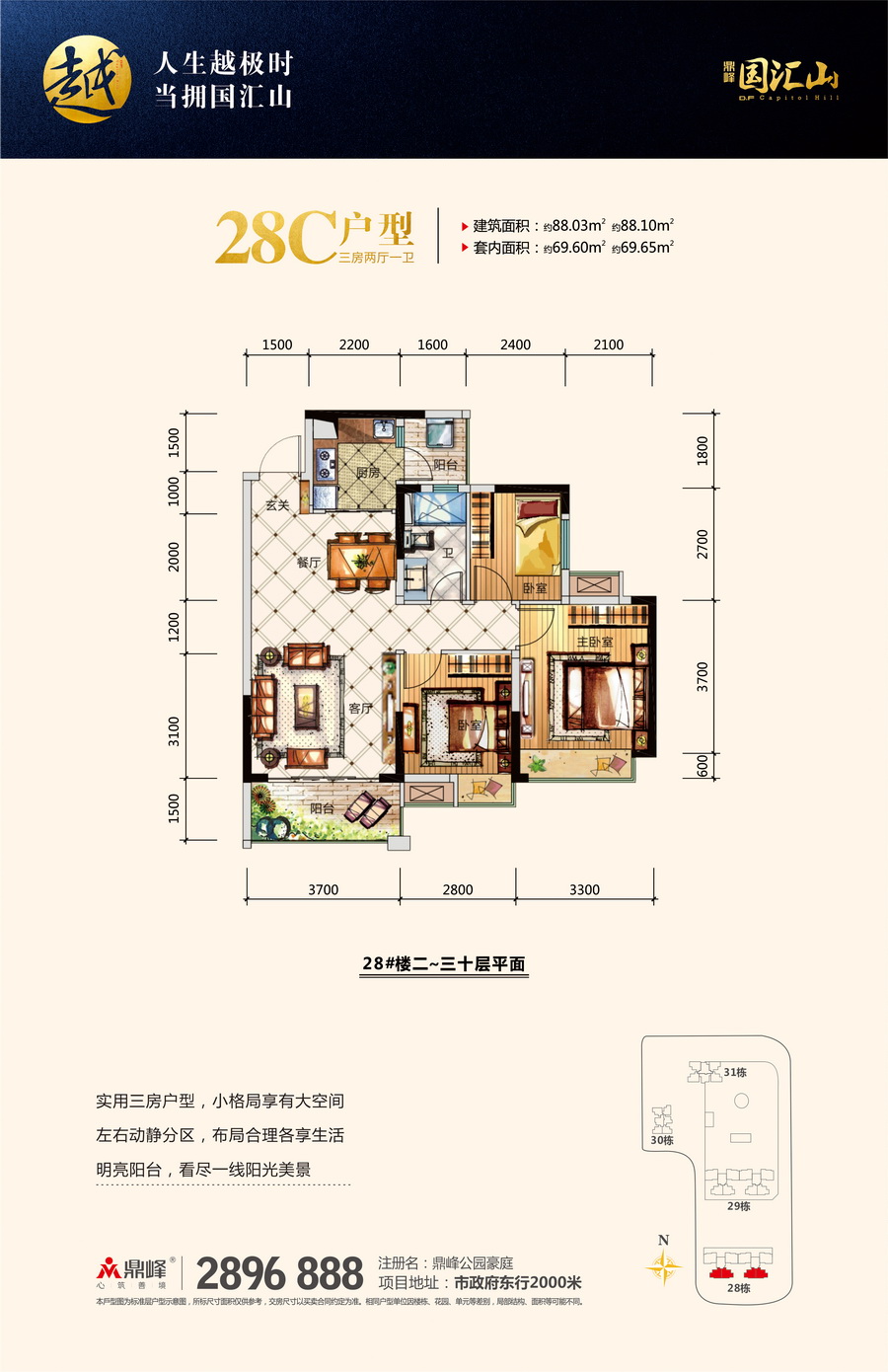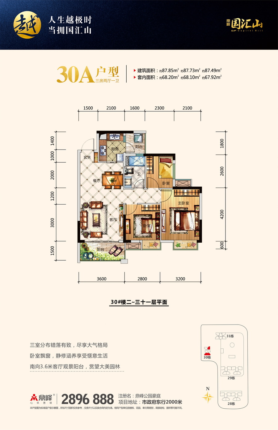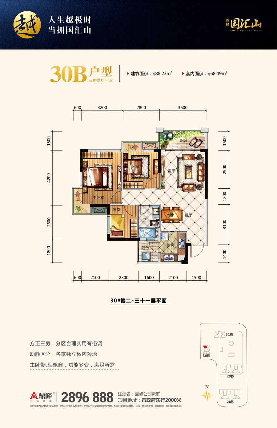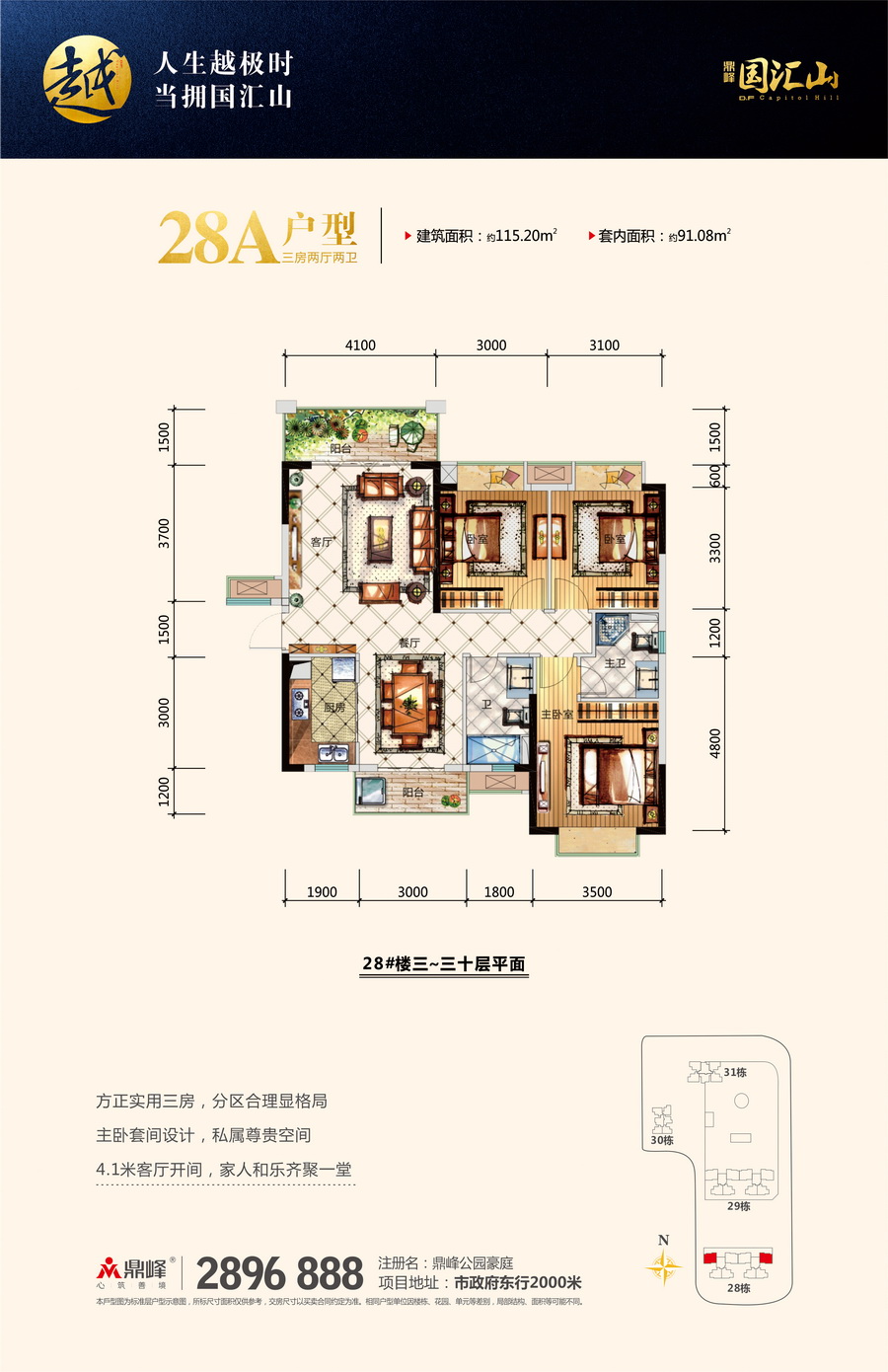 江北80万㎡墅级大盘,地处江北CBD核心区域,距市政府2公里,享千亿市政配套,享千亿奢侈配套,汇聚多条城市轨道——高速及莞惠城轨,目前莞惠城轨云山站(已开通)距离约3分钟车程。斥资5000万元捐建南坛小学鼎峰分校,并自带近6万㎡鼎峰·花漫里邻里购物中心。