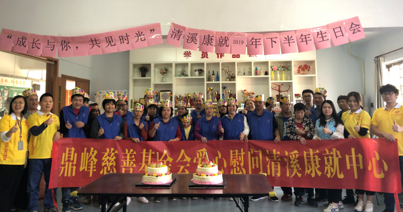 2019年11月19日,鼎峰慈善基金会、东莞市爱心志愿者协会鼎峰服务队前往清溪康复就业服务中心开展爱心慰问活动,为康就中心几十名残障人士举行生日会。活动当天,康就中心成果汇报环节后,鼎峰服务队4名公益志愿者与残障人士进行了游戏互动,为他们送上生活用品礼包,并共同庆祝生日。