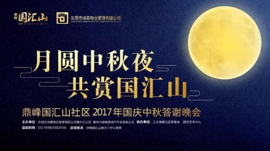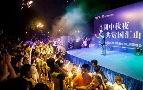 时值金秋佳节,阖家团圆之日,举杯共邀明月,乐享家庭生活。值此国庆中秋双节之际,为丰富社区文化生活,给鼎峰国汇山业主营造一个欢乐祥和的节日气氛, 9月30日晚鼎峰国汇山携手鸿泰物业举办了一场主题为“月圆中秋夜,共赏国汇山”的2017年国庆中秋答谢晚会,现场吸引了近800人次的业主参与。