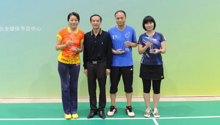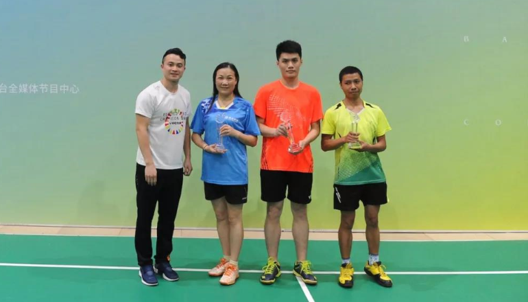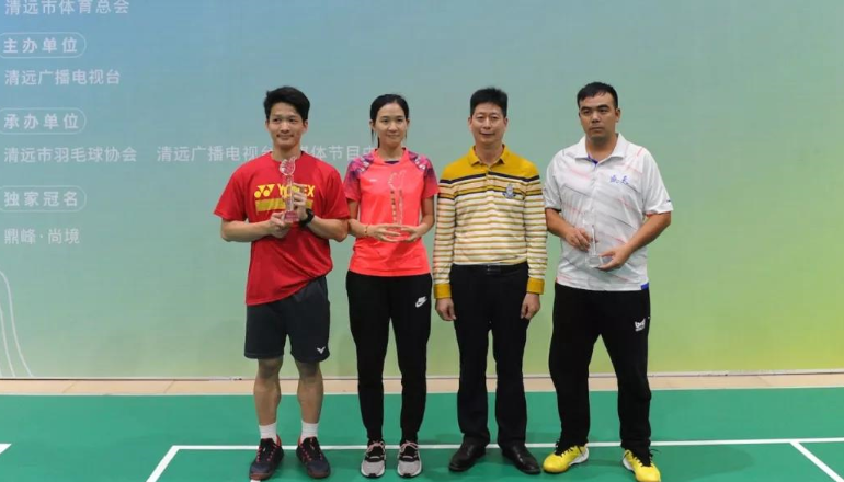 清远广播电视台全媒体房地产中心主任吴志甸为“市羽协甲级混合团体组”前三名颁奖