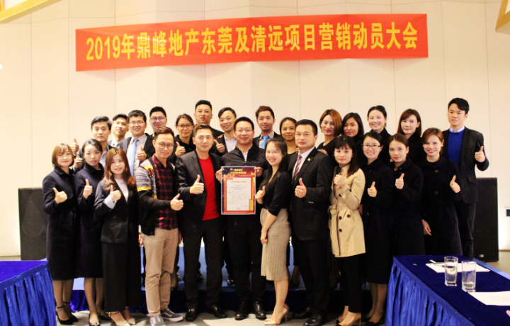 2019年3月6日,惊蛰,万物复苏。当天18时整,鼎峰地产东莞营销团队及清远项目营销团队开春动员大会于鼎峰悦境营销中心举行,鼎峰悦境营销团队、松湖雅境营销团队、清远鼎峰营销团队成员齐聚,为确保完成2019年销售指标加油鼓劲。