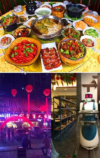 机器人服务餐厅——背篓人家经典湘西地道滋味,寮步第一家机器人服务餐厅,装修氛围体现湘西乡土风情。