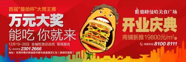 12月19-20日寮步中心唯一的大型美食广场鼎峰曼哈美食广场盛大开业暨首届“曼哈杯”大胃王赛隆重举办,能吃你就来、来吃就有奖,“曼哈”商家给力钜惠,折扣惊人!