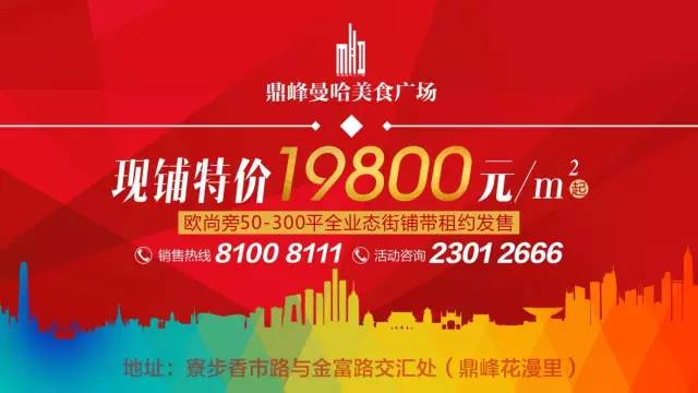 12月19-20日,为庆贺“鼎峰曼哈美食广场盛大开业暨首届“曼哈杯”大胃王赛隆重举办”,鼎峰曼哈美食广场特加推商铺,特价19800元/平米起,稀缺超值商铺闪亮登场,财富商机再次来袭!