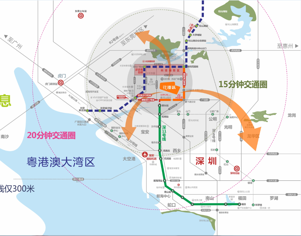 随着深莞一体化的进程加速,双城高铁和城轨的逐步接驳,城际间隔开始消融。位于深圳、东莞两城经济辐射区的长安重镇,开始引进高科技名企,获誉投资环境100强,成为东莞嫁接国家大湾区发展的战略核心。同时,东莞地铁R3线与深圳11号线无缝对接,长安作为城轨线路枢纽,半小时莞深同城生活圈已然呈现,越来越多深圳人开始在长安置业、生活,地区升值潜力不断飙升。