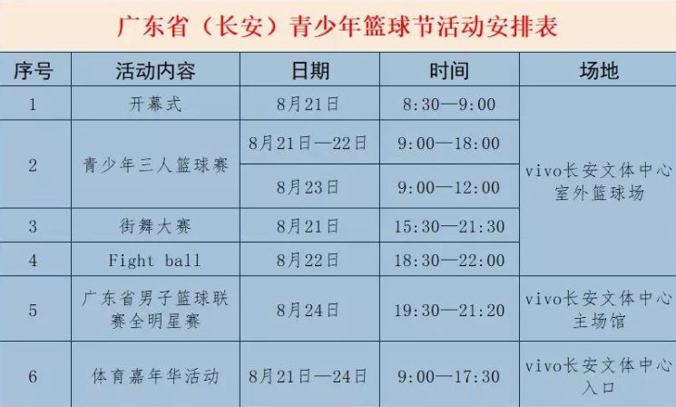 中国篮协副主席、广东省篮协会长刘克军表示,省首次举行的青少年篮球节活动落户长安,得到了长安镇鼎力支持。希望各个参赛队伍能赛出水平、赛出风格,体现出青少年朝气蓬勃、积极向上的体育精神,为长安球迷献上精彩的比赛。
