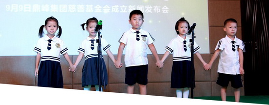 9月9日,鼎峰集团在鼎峰企业馆召开新闻发布会。伴随着清脆、童真的童声合唱,在中华儿慈会、媒体及业主代表的见证下,鼎峰集团慈善基金会成立了,并号召全民“一起公益,一起爱”,标志着鼎峰慈善事业将迈向一个新的征程。